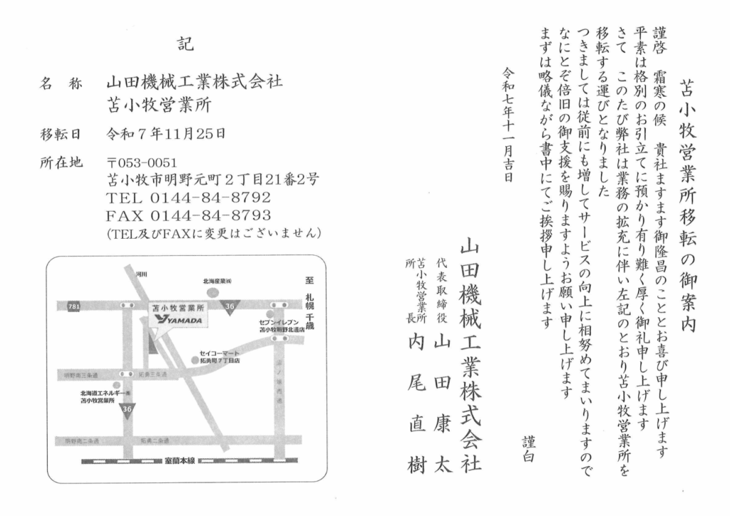 山田機械工業株式会社 苫小牧営業所